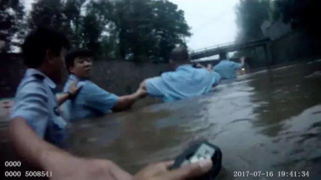 7月16日晚7點(diǎn),新密市突然下起了瓢潑大雨。7點(diǎn)30分,正在動(dòng)物園附近執(zhí)行任務(wù)的新密市公安局西大街派出所民警呂鵬輝和輔警張靖、韓耀鵬、張文龍、張永康等接110指令:于家崗鐵路橋處有人被困在水中,請(qǐng)馬上前去解救。