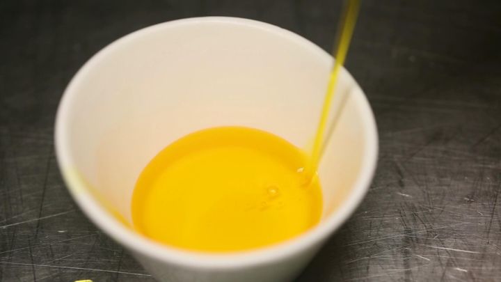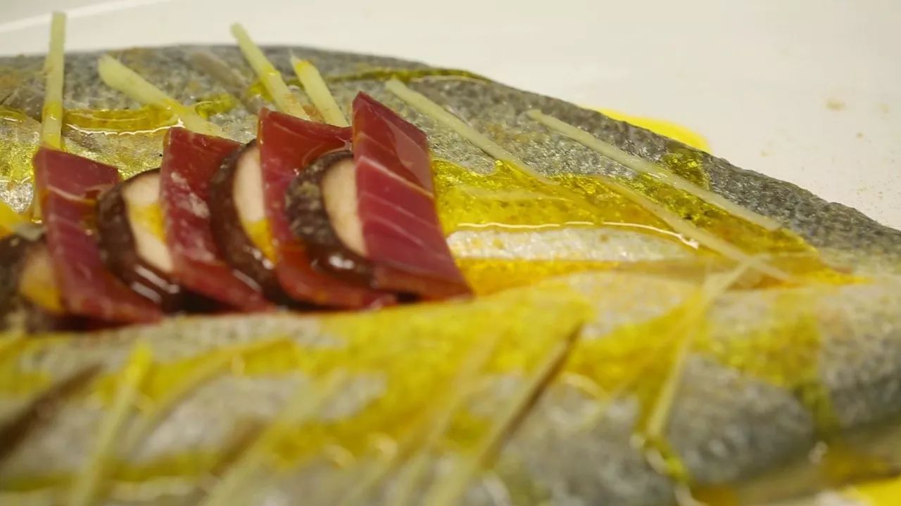 這種黃金油是用南瓜做底,還加入了花椒油等調(diào)料。整體清澈透明,聞起來有一股甜甜的香味,均勻澆在大黃魚身上。上爐蒸制的時(shí)候,料油在高溫作用下充分滲透進(jìn)了魚肉里,不僅可以給魚肉調(diào)味增鮮,還能提升整道菜的顏值。