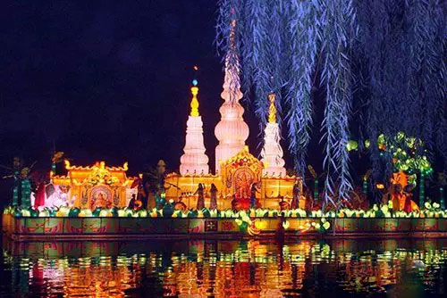 漢明帝永平年間(公元58--75),因明帝提倡佛法,適逢蔡愔從印度求得佛法歸來,稱印度摩喝陀國(guó)每逢正月十五,僧眾云集瞻仰佛舍利,是參佛的吉日良辰。漢明帝為了弘揚(yáng)佛法,下令正月十五夜在宮中和寺院"燃燈表佛"。此后,元宵放燈的習(xí)俗就由原來只在宮廷中舉行而流傳到民間。即每到正月十五,無論士族還是庶民都要掛燈,城鄉(xiāng)通宵燈火輝煌。