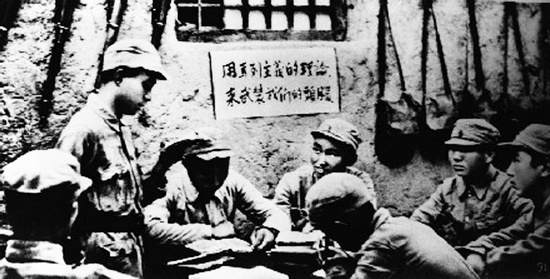 1942年,延安,戰(zhàn)士們在進行整風學習 本版圖片均來自中國共產黨新聞網(wǎng)