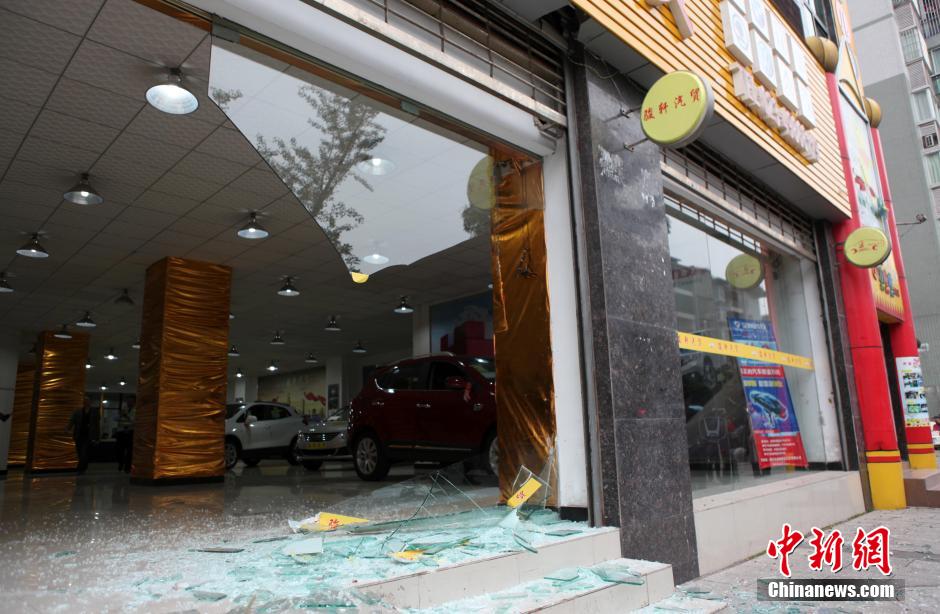 女司機(jī)撞爛售車大廳玻璃門 頂石墩狂奔20余米