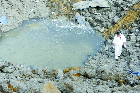 爆炸點(diǎn)形成直徑10余米的大坑
