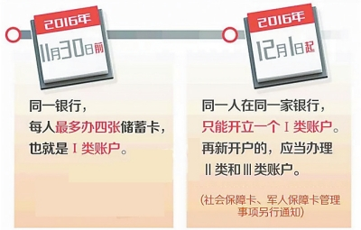 核心提示|央行關(guān)于個人銀行賬戶實行分類管理的新政將于12月1日正式實施。根據(jù)新政要求,個人銀行賬戶將分為Ⅰ類、Ⅱ類、Ⅲ類賬戶,不同類別的賬戶有不同的功能和權(quán)限。個人在銀行開立賬戶,每人在同一家銀行,只能開立一個Ⅰ類戶,如果已經(jīng)有Ⅰ類戶的,再開戶時只能是Ⅱ、Ⅲ類賬戶。央行表示,通過對個人銀行賬戶進行分類管理,規(guī)避金融詐騙風(fēng)險。