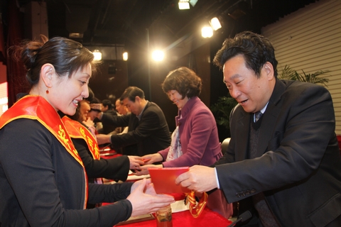 市人大副主任、市總工會主席李元法向受表彰女職工頒獎